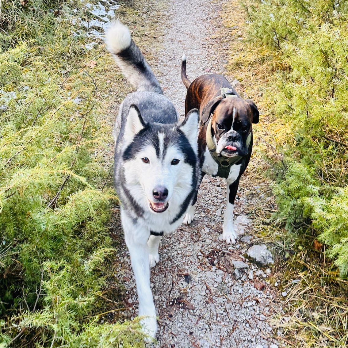 Gemeinsame Spaziergänge zum Üben von Hundebegegnungen, Leinenführung und entspanntem Miteinander.